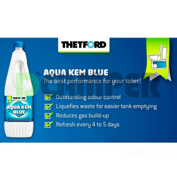 Aqua Kem Blue de Thetford es un líquido potente y eficaz diseñado para el mantenimiento diario del depósito de residuos en inodoros portátiles, especialmente en autocaravanas, caravanas y campers.