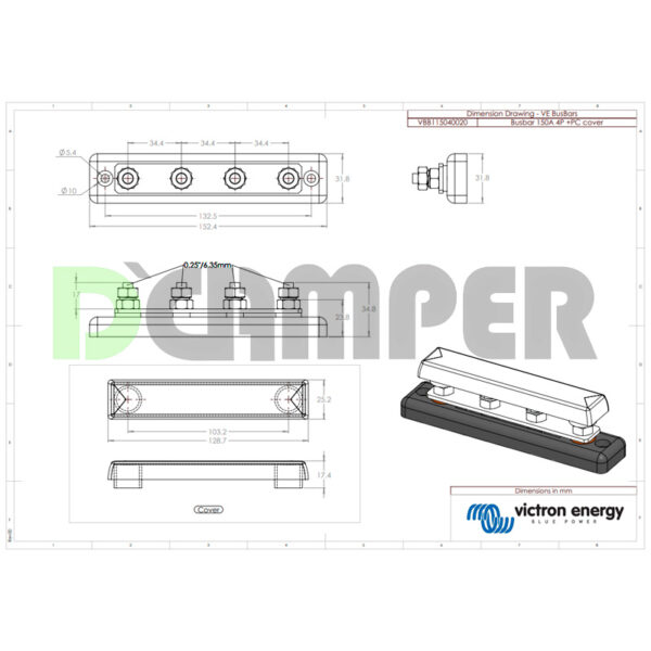 DISTRIBUIDOR VICTRON BUSBAR 150A + 4P CON TAPA