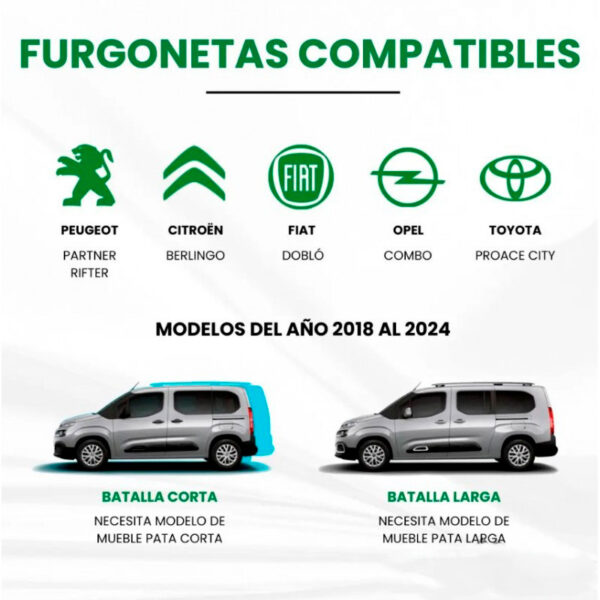 Compatible con los modelos Peugeot Rifter, Opel Combo, Toyota Proace City, Citroën Berlingo, Fiat Doblò y Peugeot Partner.