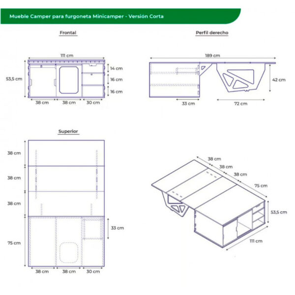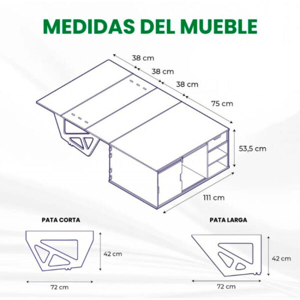 Este módulo ha sido diseñado para un montaje intuitivo y sin esfuerzo: basta con desplegar las piezas para tener tu camper listo en minutos. No requiere herramientas ni conocimientos previos, y al tratarse de un sistema “quita y pon”, no es necesario homologarlo.