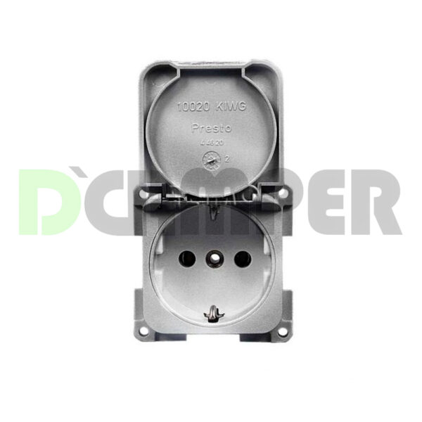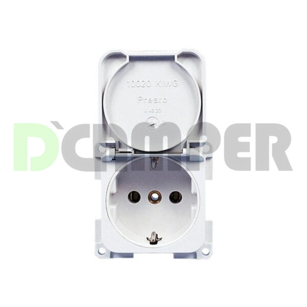 Toma de enchufe de 230V para interior, ideal para instalaciones en campers, caravanas o espacios reducidos.
